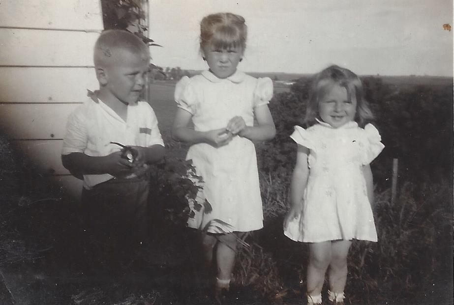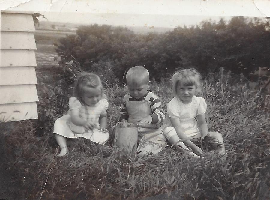 It was on this farm that the families of Uncle Pete and Uncle Harry visited us; where we (Larry & I) put live chickens through the meat grinder, went swimming in the cow tank, and had a picnic where Larry threw my shoe into the lake. Somewhere, there is a picture of Uncle Harry trying to "fish" it out of the water with a long stick. (Jerry)