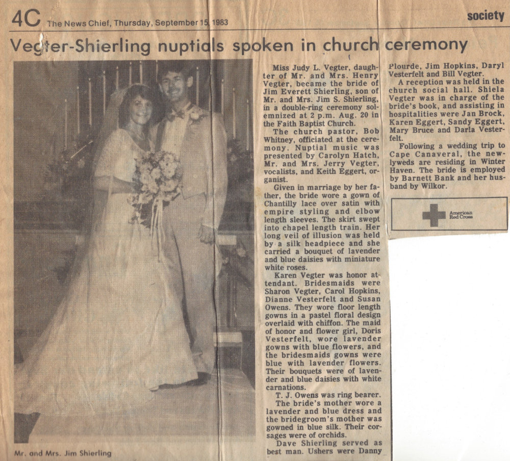 Florida Weddings The oldest five were married in Wisconsin, the youngest six in Florida. Bill and Sheila ![]() |