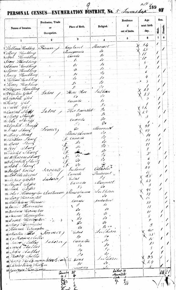 1851 Census: Page 2 First 3 Entries: Gabriel, Mary, Jacob (Jacob: Our Great Grandfather) Children's Birthplace: Canada. Ages: Gabriel (6), Mary (3), Jacob (1) ![]() Early Family History from son Jacob Holtzman's memoir "I Jacob Holtzman was born near Phillipsburg, Waterloo County, Willmot township, west Ontario, Canada on March 7th 1851. I lived with my parents at Phillipsburg from where my father went out to preach. My parents were Henry Holtzman and my mother's name was Christina Leuhard before she was married. Father and mother were both born in Germany (Elsas). From Phillipsburg we moved to Seberingsville. And as near as I can remember from Seberingsville to St. Jacobs." (from eleven page memoir of J.L. Holtzman, son of Henry & Christina Holtzman) |
