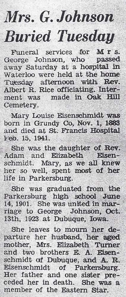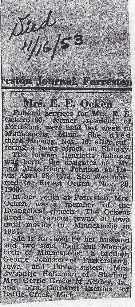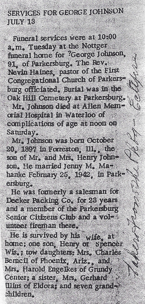 ![]() Father's Parents: Gerhard Janssen & Zwaantje Gruiter Janssen Mother's Parents: Claus Dirks Huisenga & Janna Ontjes von Mark Huisenga Father & Mother: Father: Henry Johnson (1846-1921) Mother: Gertje Huizinga Johnson (1843-1922) Children: #1: Zwaantje (1867-1964) #2: Janna (1870-1932) #3: Henrietta (1873-1953) Obit #4: Klaas (Cottie) (1974-1909) Obit, Grave #5: Gerhard (George) (1879-1971) Obit, Wife Obit #6: Henry ("Heinie") (1882-1950) Obit, Grave #7: Geertje (1884-1962) #8: Martha (1886-1981) Son |