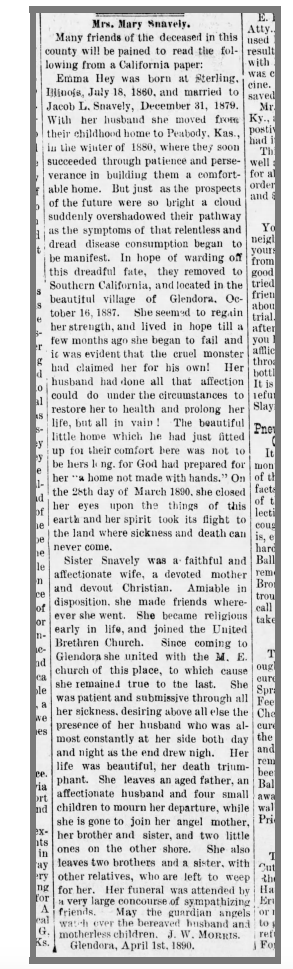 Father's Parents: Johannes Philip Hey (1774-1813) & Juliana Schloss (1781-?) Mother's Parents: Father & Mother: Father: Jacob Hey (1813-1898) Mother: Kristina Volk Hey (?-1851) Children: #1: Jacob Hey, Jr. (1845-1924) #2: Mary Elizabeth Hey Reed (1847-1912) #3: ? (?-1851) Father & Mother: Father: Jacob Hey (1813-1898) Mother: Klementina Dal Hey (1821-1887) Children: #1: John Phillip (1856-1945) #2: Carolina "Carrie" (1858-1882) Photo, Age 22 #3: Emma (1859-1890) Jacob & Emma Snavely, Info, Obit #4: Peter (1863-1863) #5: Abraham (1864-1885) |