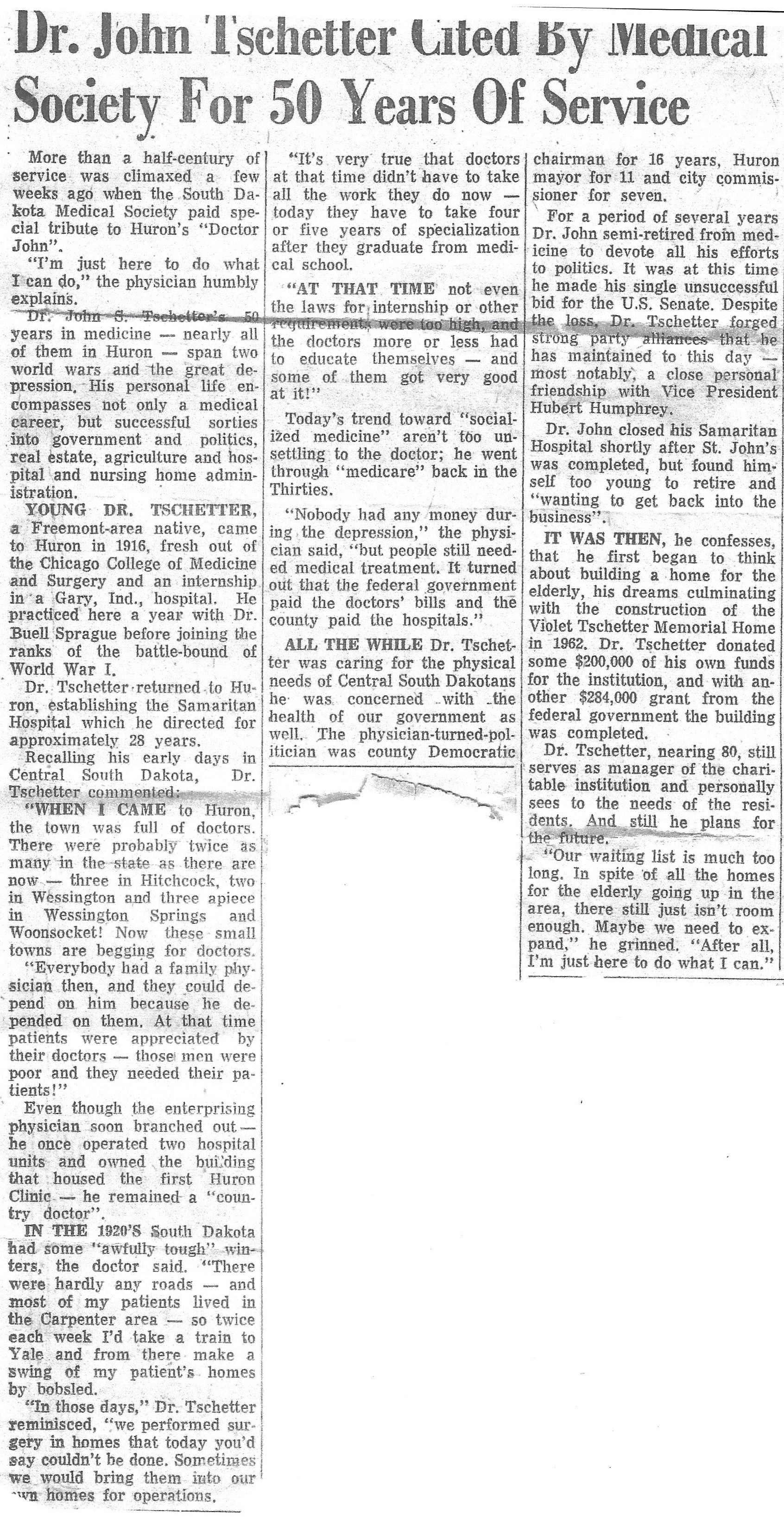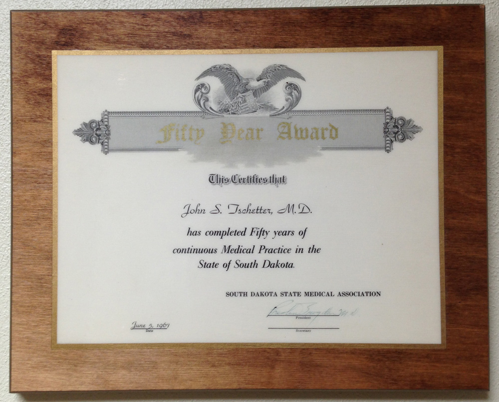 ![]() Dr. John Tschetter 50 Years of Medical Service ![]() Honors, Obituary |
