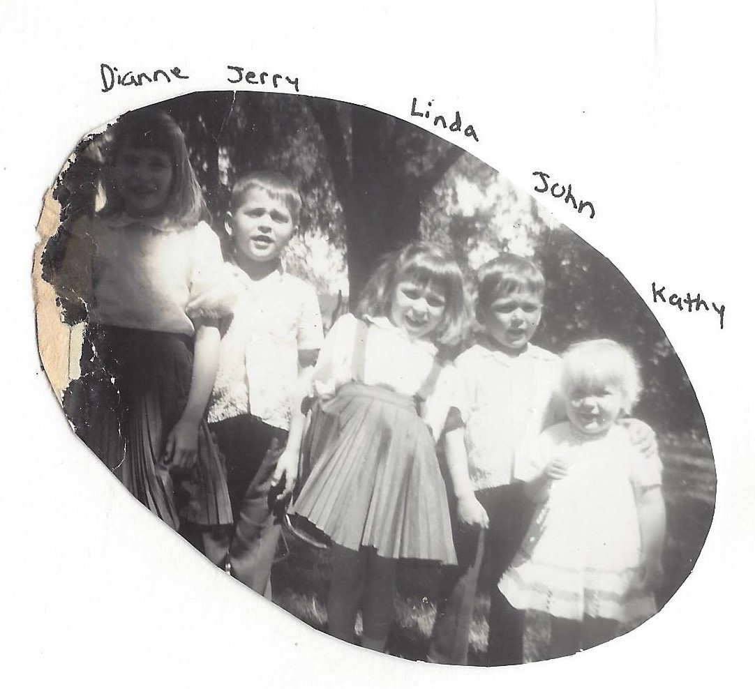 That same low area flooded in a rain, and John and Jerry made a raft out of an old wooden table top. Never succeeded in floating it, but they tried hard. Once during a tornado, dad stowed us in the basement, and went outside to have a look. How we worried that he'd not be safe. (Linda's recollection)