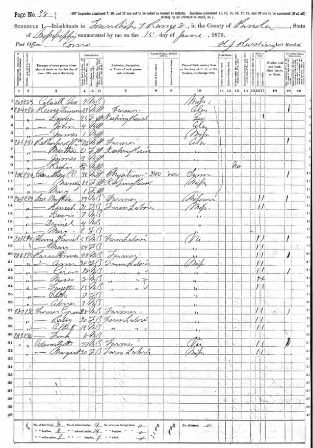 Simeon & Lydia, Federal Census Along with Simeon's parents, and following typical westward migrations, Samuel & Melvina were born in Alabama, moved to Mississippi by 1870, and to Texas by 1880. ![]() Simeon & Lydia 1870 Census, Panola County, Mississippi |