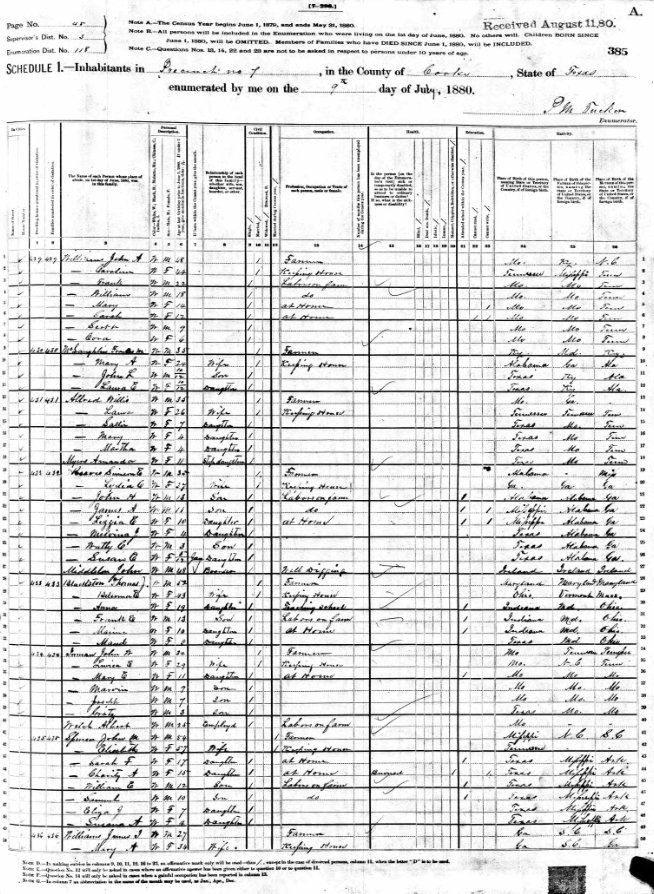 ![]() Simeon & Lydia 1880 Census, Cooke County, Texas |