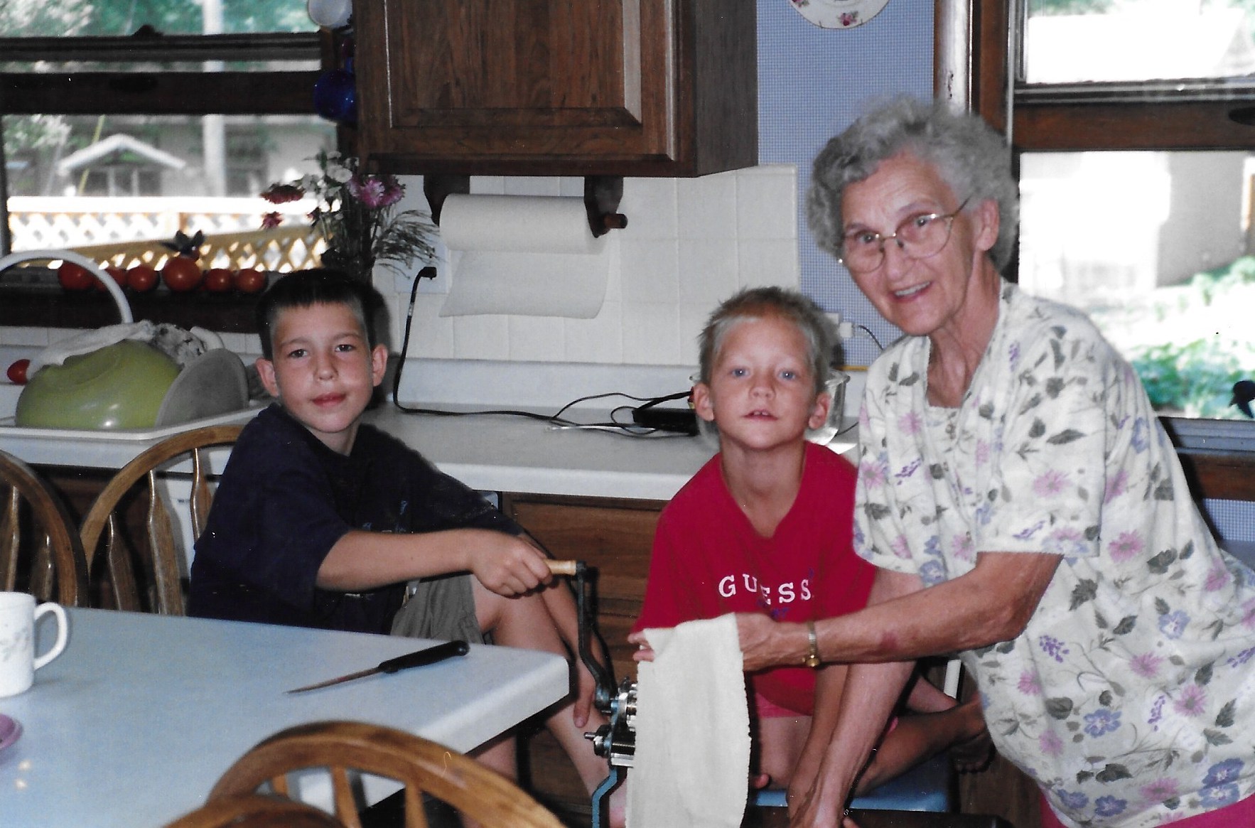 Grandma Vegter Baker Mom always made bread: batches of many, many loaves. Making noodles with Seth and Jordan ![]() |