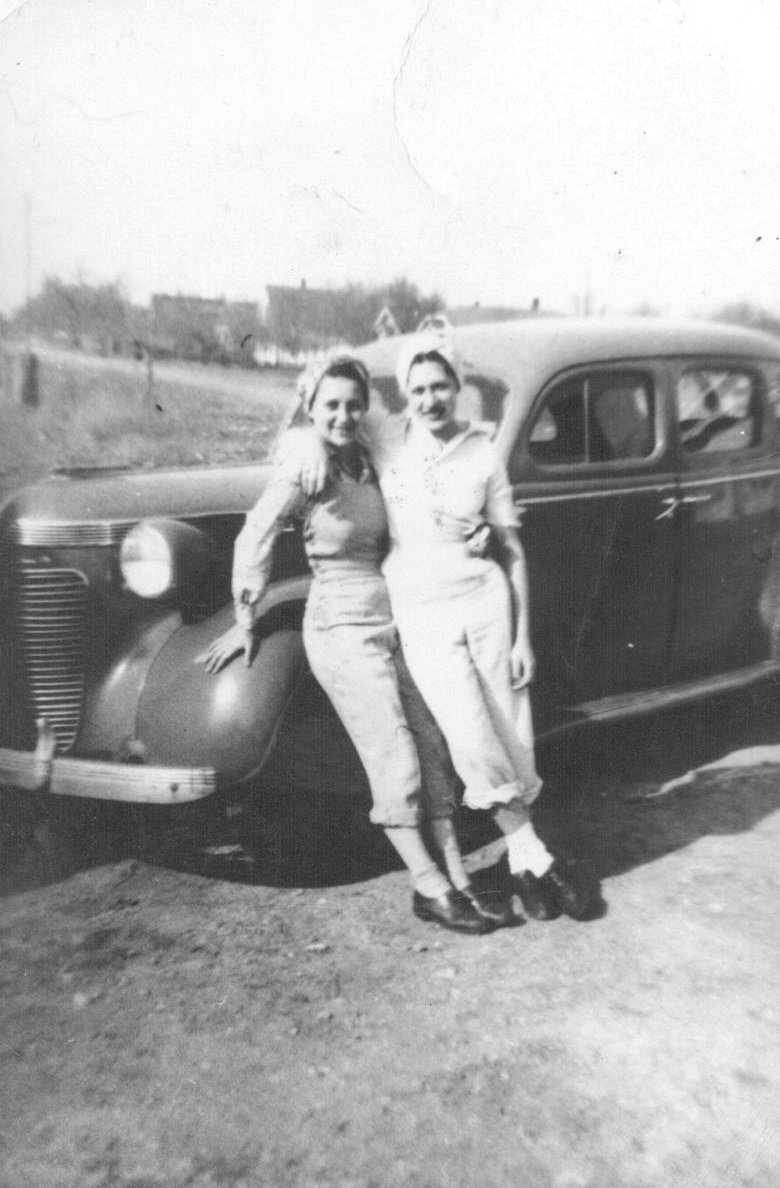 Violet didn't want to go college and thought there was nothing happening in Huron, so she and Alvina headed to exciting California to stay with Alvina's Aunt Edna. Edna had only one bed, so all three slept in one bed. As "Rosie the Riveter," Violet riveted planes together for the war. A week after arrival, the three ladies went to a restaurant where Hank Vegter and his buddy were sitting at the counter. Hank asked Alvina and Violet to go to the movies. The buddy walked out with Violet, and Hank with Alvina. Before they sat down for the movies, Hank switched girls. Alvina was so mad.