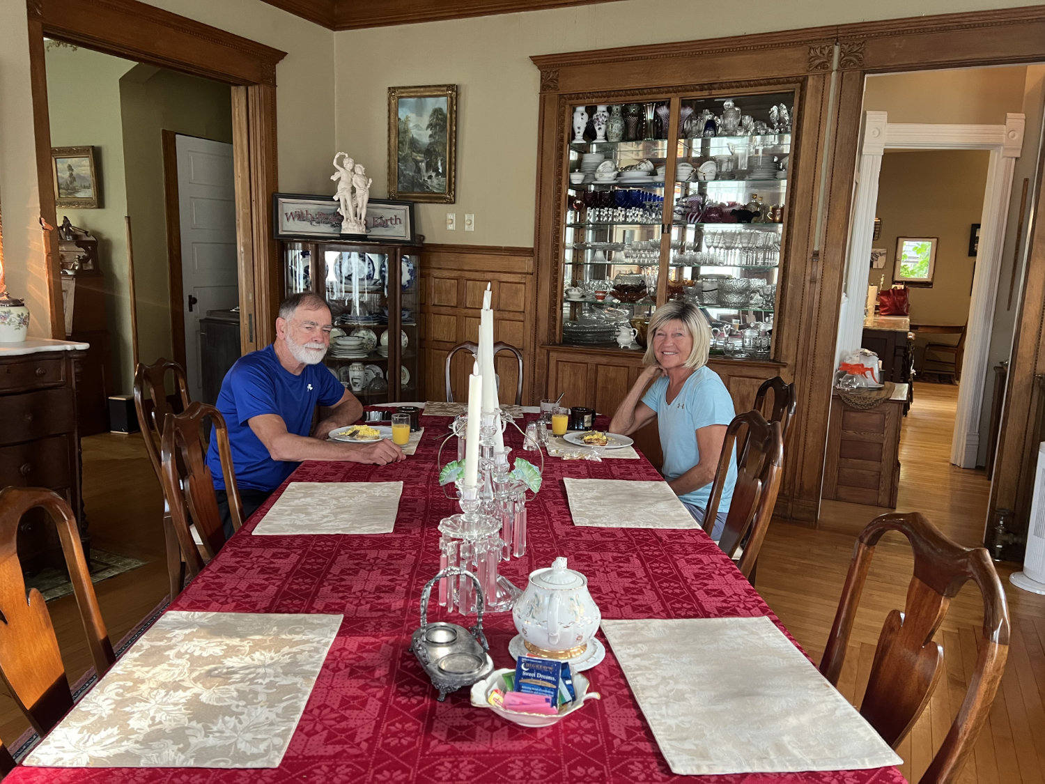 ![]() Wednesday, October 1, 2025. Kathy reading to Leo. Tuesday, September 30, 2025. Annual ride to Apple Hut for cider and apple donuts. Friday, September 26, 2025. Great fish fry at Badger Bob's. We love dancing to "The Horse." Robin joined us. Thursday, September 25, 2025. Ziggy fed the birds at Mocha Moment today. Sunday, September 21, 2025. Annual breakfast at Tiffany. Robin joined us for the day. Owners Mike and Shirley. Five arch bridge. Shopiere Tap for mimosas. Great band and lots of fun. Back across Turtle Creek on iconic one lane steel bridge. Saturday, September 20, 2025. When I first came to Janeville, I stayed with Dee Carpenter. Life long friends with her teen son. 54 years later, Rick had a surprise party for his mom. Wow. Where did those 54 years go? Thursday, September 18, 2025. Mocha Moment as beautiful as ever. Tuesday, September 16, 2025. Always goes too fast. Heading home. Left Monroe about 8:00. Back through cuts showing rock outcroppings. Cuts are deep, cool, and shady. Several vantage points with valleys and hills with a view for miles. Rode through miles of drying corn. Always have to stop at Sugar River for a look. Several fields of mown hay drying in the sun. Back home by 12:45. 45 miles today. Monday, September 15, 2025. Traditional coffee and breakfast at Fat Cat before leaving New Glarus. So many good memories of New Glarus. Rode our bikes from Brodhead to New Glarus on the Sugar River Trail with our kids many, many times. Always treats at the ice cream shop and swimming at city pool. Billy Joel sang, "Life is a series of hellos and goodbyes. I'm afraid it's time for goodbye again." On to Monroe. The rock outcroppings on Badger Trail through which Illinois Central trains chugged for decades are always stunning. And closer to Monroe the valleys of corn, soy, and angus open up. In Monroe, we always head straight to Baumgartner's for their Reuben sandwich. They've been in business almost a century. Disappointing: we always eat outside, but they had taken their tables in already. Gorgeous summer day in the 80s. Well, we didn't go back, but in the evening, on sidewalk tables, ate authentic Mexican at El Mazatlan on the north side of courthouse square. Server in his 30s was awkward and listless. He spoke no English. Spoke to him in Spanish. Complete transformation. Happy and animated. Sitting across the street from it, ate tacos in the shadows of Green County's iconic court house. 22 miles today. Sunday, September 14, 2025. Left Madison on Capital City Trail and joined Badger Trail going south. Took a side trip to Paoli. Paoli centerpiece is the old mill. Always fun and a lot going on in small, rustic, off-the-path Paoli. Bought drinks at the Hop Garden. Farmer waited on us. They only use about 30% of the hops they grow and sell the rest to local breweries. Live music. Farmers' market. The usual quaint arts and crafts stores. Lots of places to eat. Hopping place. Always enjoy Sugar River from Bellville bridge. Stewart Tunnel has been closed for a few years now. Quite the climb up and over. You can sure see why the railroad tunneled through. Repair is slated for 2026 with tunnel opening supposed to be 2027. We'll see. Bailey's Run Winery is always our New Glarus destination on Sunday afternoons. Overlooks a picturesque valley. Live music by Dawg Bones. Great band. Danced some. Friends Jeff and Robin joined us. Kathy and Robin joined another listener for some line dancing. Always finish the day with pizza at Sugar River Pizza. 37 miles today. Saturday, September 13, 2025. Weather worked in our favor. Major thunderstorm between 3:00 and 7:00 am. Great breakfast at 8:30 at Fargo Mansion. To think we are just regular Americans served scrambled eggs, bacon, and yogurt-berry parfaits. Over a century ago, very wealthy people were similarly served in that same room. Storm over. Ready to ride. As usual, enjoyed Rock Lake vista on way out. Every year we stop at 1855 Saloon in Cottage Grove at trail's end. Outdoor patio. Bridge out on road into McFarland. Five miles out of the way. Down to Kegonsa State Park. The detour gave us a majestic vista we'd never have seen: rode over a mile on new boardwalk, Lower Yahara Bike Trail, through Door Creek Wildlife Area with a view of Lake Kegonsa. Spectacular. Viewed Lake Wabesa from boardwalk between McFarland and Madison. We rode through McFarland on purpose just to ride this once again. Capitol over Lake Monona. Enjoyed eating at Great Dane courtyard downtown Madison. Invigorating just to see hundreds or thousands biking, running, walking, kayaking, etc. Madison is alive. 44 miles today. Friday, September 12, 2025. Left home about 8:30 and biked to Jefferson. Fabulous late summer weather. Split a burger at the iconic Wedl's in Jefferson. Always have to stop and look at Craw Fish River on Glacial Drumlin Trail. Wistful to imagine heyday of old Lake Mills depot. Saw Gift of the Lake sculpture in Lake Mills. Rock Lake with its Tyranena legend is major theme in Lake Mills. Stayed at Fargo Mansion B&B. Incredible home. Built in 1881. Fargo was descendant of banking family. When line died out, mansion became apartments. Mansion crumbled. By 1980s mansion was condemned and scheduled for wrecking ball. Barry and Tom bought and restored it. Now it's a stately and elegant bed and breakfast. We were privileged to stay the night. Tyranena Brewery did not disappoint. Thai food truck. Pupy Costello and New Hiram Kings put on quite the show. We danced a lot. 45 miles on Friday. Tuesday, September 9, 2025. Annual grape harvest. The grapes. 13.5 gallons of juice. By time of photo, some already given away and in pitchers in cooler. Sunday, September 7, 2025. Our annual ride to Countryside for breakfast and then north 6 miles to Staller Winery. 43 miles round trip. Gorgeous day. Saturday, September 6, 2025. Another great evening at the Butterfly. Friday, September 5, 2025. Felix pulled Ziggy to our house for a visit. Tuesday, September 2, 2025. 1st Day