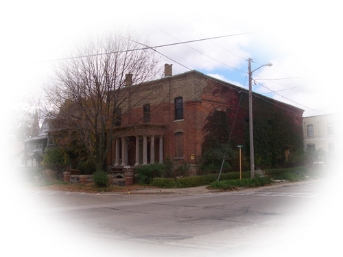 The church building that he preached in is [still standing] at the corner of Cherry and West Court Streets. This building once had a pointed facade to make it look like a Greek revival piece of architecture. Note the four-column like brick projections on the front. During the 1870's it served as the Wm. Tallman perfume factory and [in the 1970's] the Hulick Printing Company.