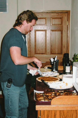 Brian made his famous pies for our open house celebration the evening before. Later, Brian would make his mouthwatering pies for our customers every weekend for about a year. How many friends would use a vacation day to make sure you succeed? Brian was with us at the opening 5:00 a.m. tick of the clock on Monday, January 13, 2003. |