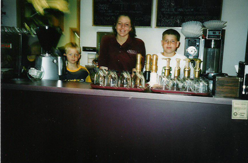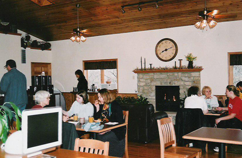 Kathy's family is huge: 8 sisters and 3 brothers. And they are "there for each other." Sue owns a barbecue house in Texas and so had plenty of experience to contribute. Carol, Sue, and Sharon trekked north from Florida and Texas, stayed for a week, and helped us open our shop. Southern girls braving Wisconsin January for a week to make sure we succeed. Now that's family loyalty. Kathy's fun-loving and receptive family had strongly influenced me in the capacity for hospitality which pervades Mocha Moment. Our shop exudes their characteristic welcome, warmth, openness, and inclusiveness. Thanks forever. We didn't advertise on purpose. We had no experience and didn't want to be overrun and perform poorly. And so with no fanfare, we opened for business at 5:00 a.m. on Monday, January 13, 2003. |
