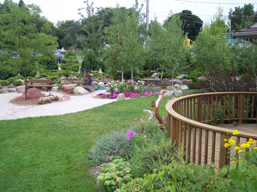 With no land development experience, Kathy and I were riding our bikes on Sunday afternoon, June 9, 2002. Like countless others, I'd passed 1121 Center Avenue hundreds of times in my lifetime. But for the first time I noticed our corner in "property search mode." Here's what I saw: the property was for sale, it was in the middle of a business zone, and it was vacant. I thought, "This can be rezoned." Excited, we parked our bikes and hurried behind the house; we viewed the woods for the first time. The Dame's Rockets were in full, purple, magnificent bloom. Immediately the concept was in my mind: build a shop back by the woods and face the woods—not the street. And that is exactly what happened. When we now pass properties we had pursued, Kathy and I periodically remark, "Scary, isn't it! We might have been there." Yes, we were supposed to be at 1121 Center Avenue; our shop was supposed to be an oasis in a busy city, a respite with woods and gardens and flowers, and an affordable treat with friends and family. |